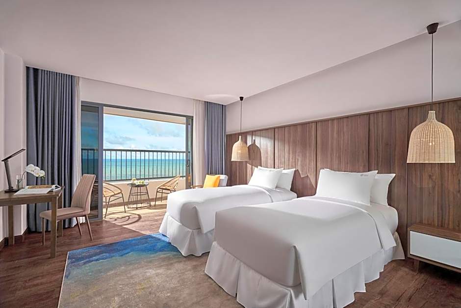 Vung Tau's pristine beachfront sets the stage for a five-star escape where the sea breeze blends with modern comforts. Right on Thuy Van Beach, stylish terraces and balconies frame mountain views, a tranquil garden, and non-smoking rooms that foster easy relaxation. An adults-only rooftop infinity pool provides a chic skyline moment, while a separate outdoor pool and a kids' pool keep things family-friendly by the shore. Free wifi, air conditioning, and a 24-hour front desk ensure stays smooth from sunrise to moonlit strolls.